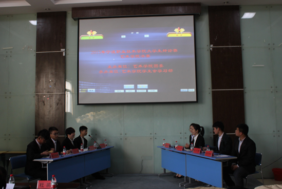 艺术学院第四届“明德杯”辩论赛的决赛于2015年4月8日下午16点30分在东校区105举行,比赛的辩题是治理雾霾过程中人民和政府哪个更重要。