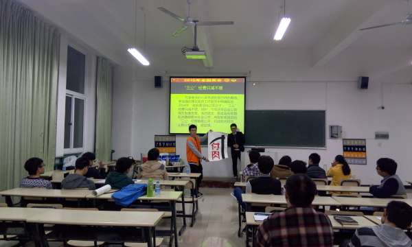 图为:“两会”作品演讲比赛现场 本次活动的开展过程中,各位发言的海天学子都拿出了唇枪舌剑的气势,利用自己的口才和作品以及自己所做的PPT来几种阐述自己的作品。更重要的是在这个过程中,海天学子们通过自己理解的两会相互学习,共同进步。 最后在这次活动中产生的前三名来自模具3144的阮音学获得了第一名,来自机电3141班的时年等两人获得第二名以及设备3141的魏涛获得第三名,三支队伍将带着他们的作品代表海天学院出战校“我与‘两会’作品征集展示活动”。