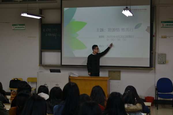 历年来校庆都是学生会的重要工作,为使校庆期间的工作能更好的进行,工商学院学生会主席团于2015年4月9日晚20点在明德楼307教室借第三次室内团学培训布置了各部门校庆期间的任务。 培训伊始,主席团副主席汪鹏飞用PPT向同学们简单介绍了本次校庆的主要内容。本次校庆将于2015年4月26日9时至16时在文化一条街举办,主题是“思源情,慈善行”,共分“专业特色DIY”、“非物质文化遗产”、“自制美食”、“游戏竞技”和“才艺展示”5个展区。