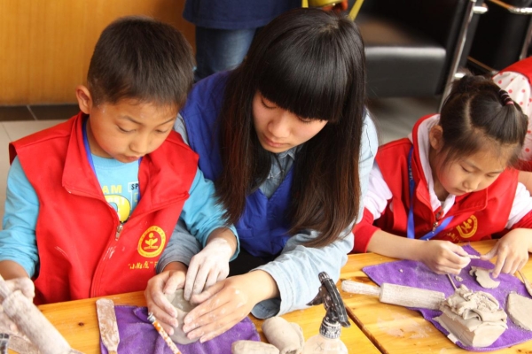4月19日宁波职业技术学院国际学院义工大队数十名义工参加北仑青少年宫组织的陶艺制作活动,义工和少年宫的小朋友们一起体验制作陶艺品的乐趣和幸福。