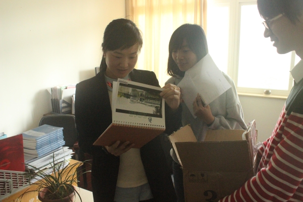 为感谢老师们的积极参与与配合,国际学院学生会组织将老师们的写真打印出来,制作出了12份精美的小台历。4月22日下午,沈家威同学和姜佳佳同学代表我院学生会,向各个参加活动的分院老师送出这份独一无二的特制小台历。