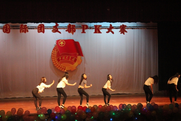 2015年4月23日晚,于李惠利大剧院举办了第五届国际团支部PK大赛。担任此次大赛评委的分别是工商学院团委书记米娜,公共教学部体育老师谢丽媛,国际学院教学秘书王伟,国际学院辅导员朱娟。另外莅临本次大赛的嘉宾是艺术学院团委书记屠琳琳,国际学院团委吴艳艳和大一部分班主任。在国际学院第五届团p在火辣的热舞中,拉开了帷幕。