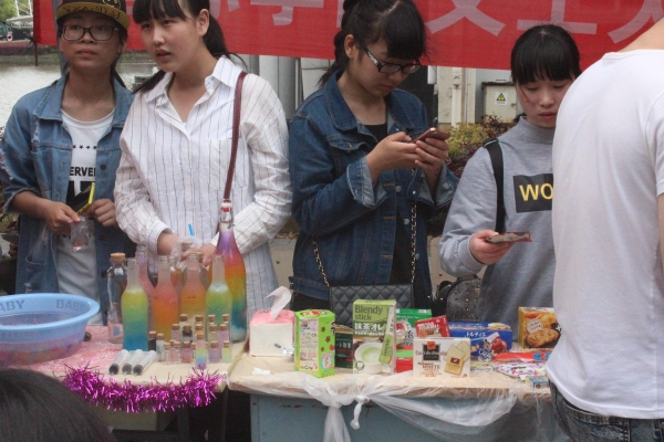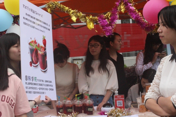 图为:国际学院学生正在卖日韩小吃