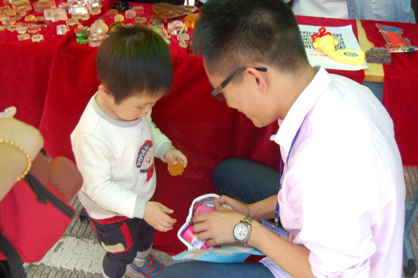 图为:化工学院工作人员正与小朋友互动