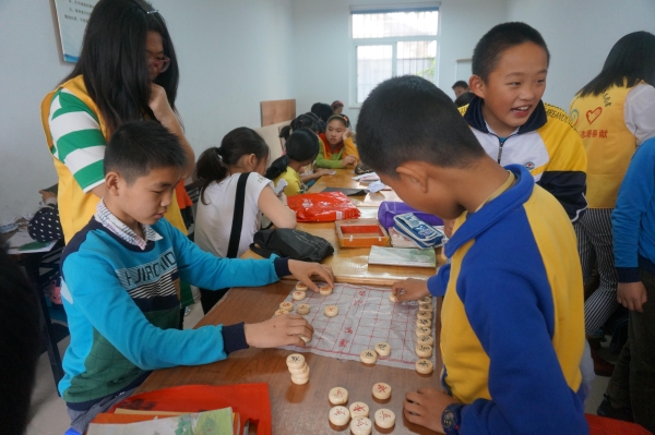 第一节下课,有些小朋友拉着志愿者的手去跳皮筋,有些小朋友则留在教室或下棋或聊天。下课时间很快过去了,小朋友们乖乖地开始手工课。他们带着自己的报纸杂志等废弃纸,开始了各自的想象创作之旅。一堂课又在其乐融融的氛围中结束了。每个小朋友都有了自己的作品,在得知五一放假的消息以及下次要准备的东西后,便欢呼着背上书包,与志愿者们告别回家了。而志愿者们则像往常一样,把教室打扫完毕才踏上回校的路。