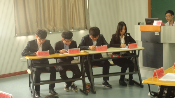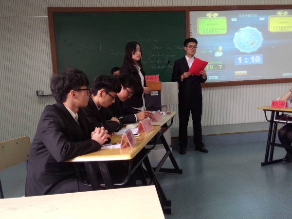 为培养我院同学们的人文素质和思辨能力,营造良好的校园学术氛围,同时增强学生的语言表达、沟通交流以及思辨能力。2015年4月29日下午12点10分,由公共教学部思政理论教研室主办,校学生会学习部承办的第四届“明德杯”大学生辩论赛在精技楼303隆重拉开帷幕。思政教研室杨宏老师、吴艳冬老师,前校学生会主席团成员杨垠峰,校学生会文娱部副部长周一洲担任此次辩论赛的评委。