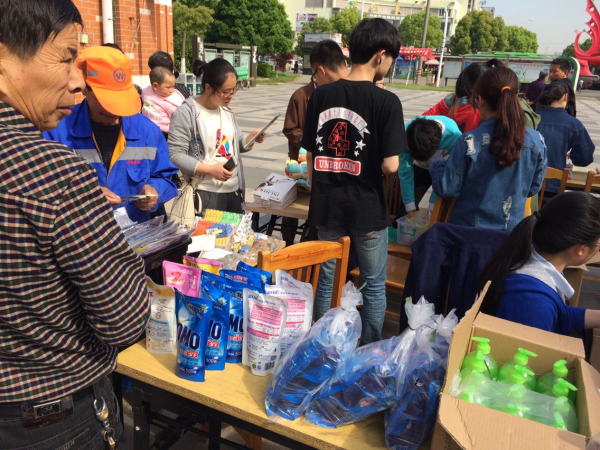 图为:同学正在摆放物资 义卖以第16届校庆“思源情,慈善行”的主题为口号,本次活动自上午8时开始一直到下午3时。此次义卖所有物资包括洗衣液、衣架、毛巾等生活用品,也有各种绿植点缀其中,还有一部分学习用品也被摆上了货架。社区的居民们对义卖也表现出了极大的热情。在志愿者们的吆喝下,大批的社区居民汇聚到摊位前,询问价格,压价还价,掏钱购买。一笔笔的义卖就这样水到渠成。面对居民们的询问,志愿者们也都面带微笑,耐心的做出解答。对于本次的爱心义卖,居民们表示支持,并十分愿意通过购买来奉献自己的一份爱心。