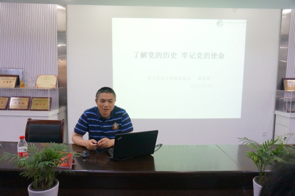 为帮助同学们树立正确的入党动机,更好地向党组织靠拢,学习更多建党知识。2015年5月6日下午3点30分,宁波职业技术学院电信学院敬业楼党员之家开展了第一次党课培训。此次党课由我院党总支书记龚友国老师为同学们授课,分团委书记陈宇老师主持本次党课,党员、预备党员、入党积极分子、团学干部以及学生干部参加此次培训。