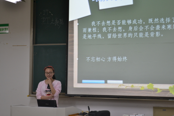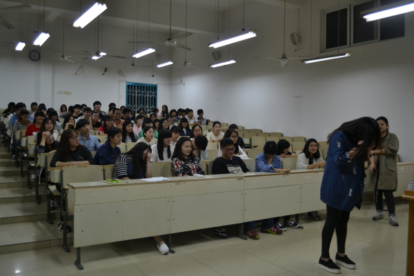 为增强工商学院团委学生会干事之间的交流,提高干事们的能力和素质。2015年5月7日晚8点,工商学院团委学生会第六次团学培训活动在明德楼307教室举行。本次活动由素拓部部长唐秋燕和外联部部长顾鑫尧策划安排。 首先,唐秋燕以“大学里你不能错过的事”为主题,用ppt展示的形式向干事们授课。她说道,在座的干事们进入大学已将近一年,也许觉得大学生活没有想象得那么轻松自在,也失去了初来时的热情与新鲜感,但有许多问题是我们该时刻思考的,如“我来做什么”、“该怎么做”、“我到哪里去?”等。她提到,虽然我们进入大学,但前途的选择并没有结束,有规划的人生才能走地更远。努力学习技能、抓住每一次能够锻炼自己的机会都很重要,学会为人处事,学会享受生活。最后,她选用著名诗人汪国真的话“既然选择了远方,便只顾风雨兼程”送给干事们。不忘初心,才能方得始终。