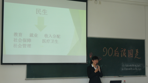 2015年5月8日中午十二时许,于海天楼522教室有一场由马研会宣讲团为我们带来的 “90后共谈国是”的讲座。本次讲座由我校马研会主办,我院教务管理委员会承办。