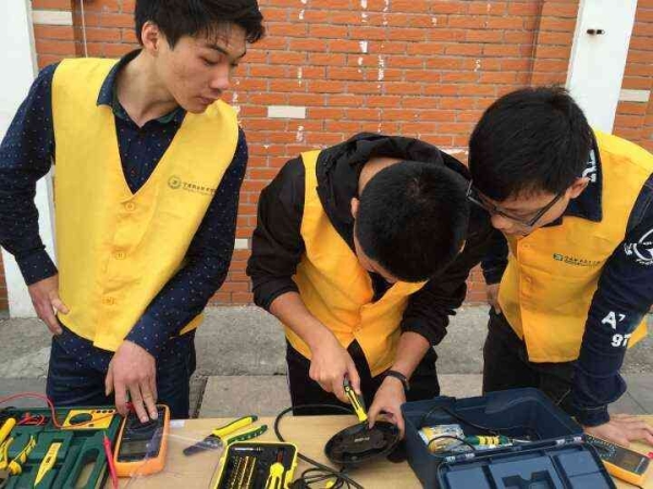 图为:队员们维修小家电中