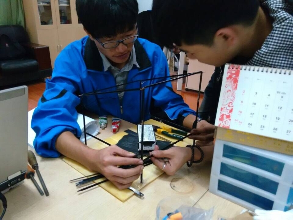 当采访小组来到模具楼教室时,智能晾衣杆小组成员们正在制作雨棚,此项目负责人蒋泳臣了解我们的来意后,热情接待了记者。在采访过程中,记者了解到,本产品由DHT11温湿度传感器,步进电机驱动板,红外线遥控接收器,雨水传感器,Arduino,LED显示,光敏感应器等七部分组成。晾衣架分为两层,上层为防雨布,下层为升降衣架,在雨棚的四周是侧棚,以防雨水从侧面打湿衣服,雨棚顶部搭载了步进电机、雨水传感器、光敏传感器等元器件。主要用于防雨棚的自动伸缩,防雨水、露水和曝晒等一系列问题。蓄电池供电,更换方便。