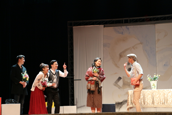 图为:话剧现场 这项活动从2005年开始在全国范围内广泛开展,得到了全国各大院校学生普遍欢迎和赞誉。宁波职业技术学院荣幸邀请到了杭州话剧团,此次《青春禁忌游戏》(原名为《亲爱的叶莲娜-谢尔盖耶夫娜》)讲述的是4个年轻人想要说服老师交出存放上午考完的试卷保险箱的钥匙,以老师生日为由展开了一场残酷的“游戏”。故事原型发生在三十年前的苏联。本次演出话剧将中国现代文化元素以及新潮的热词融合进去,在原先的剧本上增加了创新元素,具有现代文化气息,让观众更加简单明了的了解剧情发展。4名学生代表,把当下关于成绩,关于分数,关于理想以及一贯的虚伪、丑陋展现的淋漓尽致,并且女老师这一角色更加突出表现了她的理想主义情操。演员们的精湛演出赢得了在场观众的阵阵掌声!
