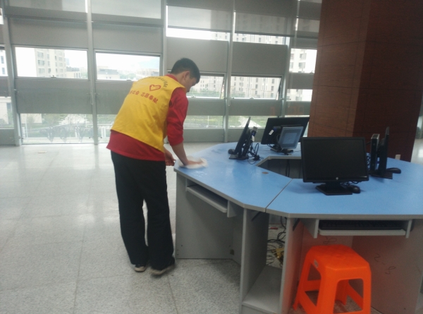 本次图书馆打扫活动主要分为二楼报刊杂志阅览室和四楼共享空间阅览室。两个部分。打扫图书馆,主要还是志愿者们需要用抹布去擦书架,书柜,书桌上的灰尘和脏东西。虽说打扫起来又脏又累。但是对于志愿者来说都无所谓,因为他们嘴角的微笑已经证明了。