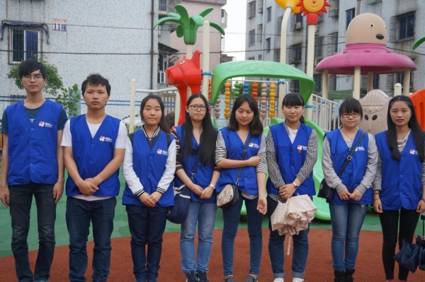 2015年5月14日下午3时,国际学院勤工助学部干事应青妙和金亚琪带领7名义工前往北仑区的新碶贝碶幼儿园参加防震演习。