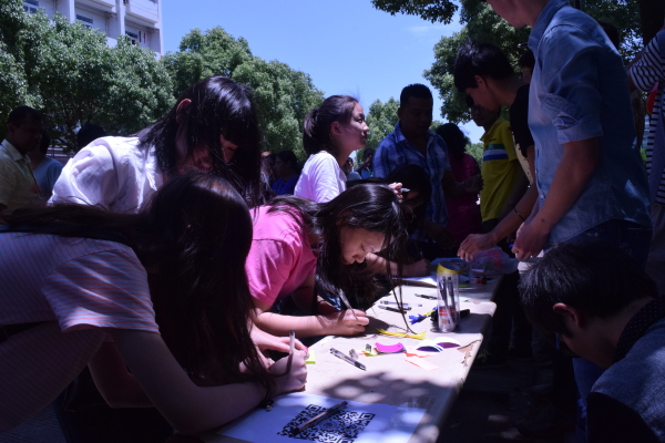 活动面向我院全体师生,老师和同学们可以将自己想说的话写在便条纸上,然后,由电信学院学生会干事收集整理便条纸,并悬挂在表白绳上。或是订阅“宁职院DianXin学院微信公众号”参与微信表白墙活动。活动刚开始,就吸引了大批来往的师生,大家纷纷为自己的父母、亲人以及朋友们写上祝福和寄语,并亲手将卡片系到绳子上。活动现场,更是吸引了大量的国际友人参与其中,写上了对于中国以及宁职院的感情,表达自己自内心的感受。同时,老师们也纷纷对自己的学生写下给予,希望学生们能在学习、工作上突破自己。在活动的尾声,电信学院学生会干事们也纷纷在便条纸上写上了自己的祝福与表白。