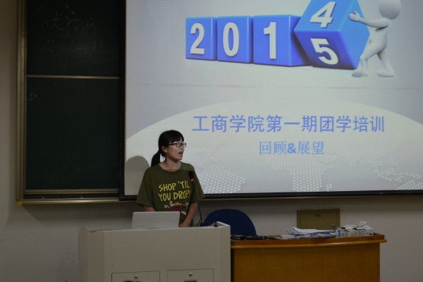 2015年5月22日晚上20点,工商学院团委学生会团学培训考核在明德楼307教室举行,本次活动由工商学院分团委副书记杜凌娜组织安排。 首先杜凌娜为大家播放了一段视频,视频详细的回顾了大家从大一入校经过学生会面试,共同经历了迎新晚会、运动会、一·二九大合唱、十佳歌手比赛、主持人大赛等一系列活动,每个活动中都能看到大家的身影,短短的视频记录了各位干事将近两个学期内的成长,也表达了学校、老师以及各部门部长对大一干事的关心。