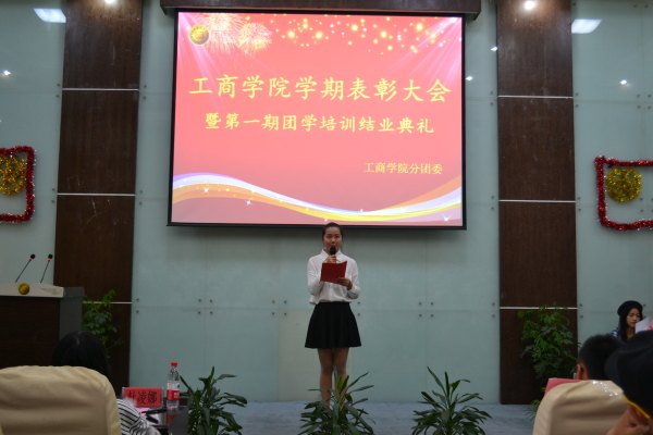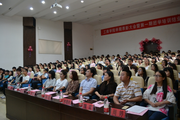 为表彰工商学院第一期团学培训优秀学员,总结培训情况,2015年5月28日中午12点,工商学院学期表彰大会暨第一期团学培训结业典礼在明德楼105会议室隆重举行。莅临本次大会的嘉宾有工商学院党总支书记、副院长沃意琳老师,工商学院分团委书记米娜老师,工商学院学工办主任杨超老师,工商学院分团委办公室林珊帅老师、魏雷老师,工商学院分团委副书记杜凌娜,工商学院学生会主席周婷,工商学院学生会副主席汪鹏飞、郑丹妮及团委学生会各部门部长及副部长。团委学生会各部门干事出席了本次典礼。
