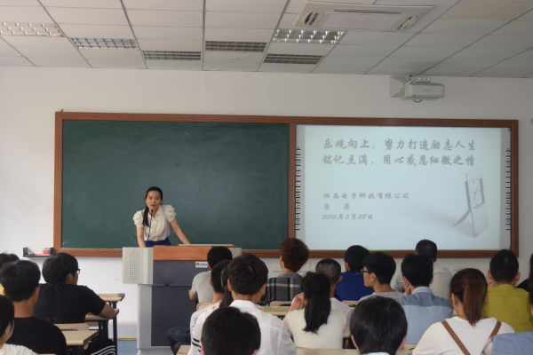 2015年5月28日下午1点30分,电信学院义工大队在精技楼106开展以“感恩在心,报恩在行”为主题的座谈会。电信学院辅导员陈洁琼出席本次会议,此次活动的主讲老师是宁波市北仑区恒晶电子科技有限公司的执行董事,我院应用电子专业2012届优秀毕业生唐涛。我院68名义工参加此次讲座。