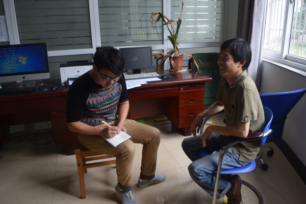 图为:我院新闻记者采访李宏铭老师