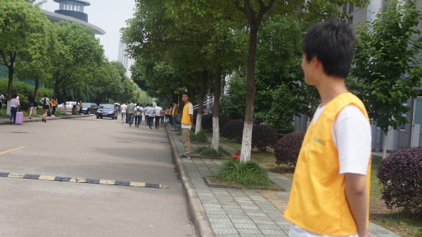 2015年5月28日,中午十二时许,于惠利大道与院士路的一路上,一个个身穿黄马甲的志愿者沿着道路两边站开,他们为泰河幼儿园家长做引导工作,他们指引着这些泰河幼儿园孩子们的家长前往顾国华体育馆开展泰河幼儿园校庆现场。