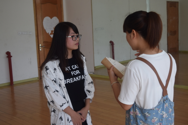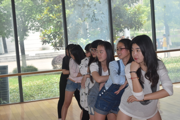 她们是一群没有专业功底的非舞蹈系学生,却对舞蹈有无限热爱的学生。2015年5月29日中午12点30分。电信学院新闻小组来到顾国华体育馆一楼形体房对电信学院舞蹈队进行了一次专访。当记者来到形体房时,舞队正紧张的在为“迎新晚会”做准备。据了解,舞队于2014年11月成立。当舞蹈队成员发现记者时,前文娱部部长兼舞队队长周琛佳热情的接待了记者。