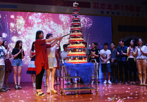最后随着倒计时的结束,礼仪小姐推出了一个十层的大蛋糕,在生日快乐的歌声中,我们共同祝愿凝志之声广播台生日快乐,并由广播台所有校友和各位老师一起切开蛋糕。衷心祝愿“凝志之声”越办越好,成为宁职院校园名片中最闪亮的一部分。