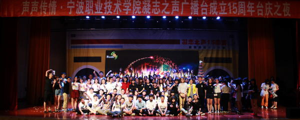 5月30日晚,宁波职业技术学院“凝志之声”广播台举行盛大晚会庆祝开播十五周年,出席此次晚会的嘉宾有学院保卫处处长、武装部部长、院团委书记励宁老师,艺术学院直属党支部副书记、院团委副书记赖敏雅老师,院团委童燕老师、游华丽老师,及各分团委书记和老师们。此外,宁波经济广播节目部主任萧鸣,宁波经济广播主播小米也莅临台庆。还有来自宁波工程学院,浙江万里学院,宁波大红鹰学院,宁波卫生职业技术学院的同学。