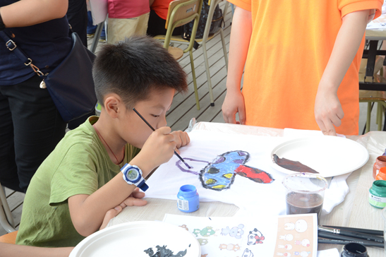 活动中,大家大胆在T恤上放飞梦想,释放脑海中的独特创意,展示个性的魅力,将五彩斑斓的色彩绘制在T恤上,在DIY中,家长与孩子都能共同享受制作的乐趣。不一会,Kitty猫、卡哇伊的小猴子、蜡笔小新……一幅幅妙趣横生的涂鸦在孩子的努力下完成了。看着孩子们亲手制作的彩绘T恤,家长们脸上也绽放出舒心的笑容,夸奖着,鼓励着,让孩子们尽情发挥。