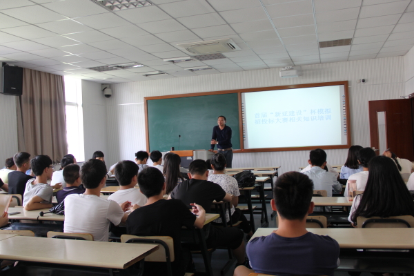 我院开展首届“新亚建设”杯模拟招投标大赛。为让同学们更多的了解和熟悉本次招投标大赛的规则和流程。我院于近期在精技楼305教室,开设招投标大赛相关知识培训公开课,由实训中心主任王海林老师授课。来听课的同学为大二年级建工、建管专业学生。