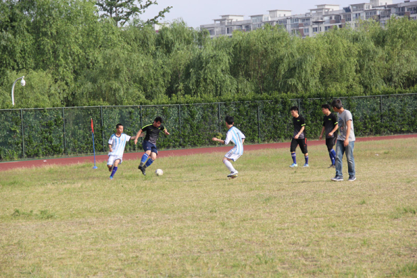 2015年527日下午16:00,在宁波职业技术学院足球场上建工学院化工学院小组赛拉开了帷幕。天气虽然炎热,但是穿着球衣的双方队伍依旧热情高涨,对接下来的比赛表现出既兴奋激动又信心十足的样子。
