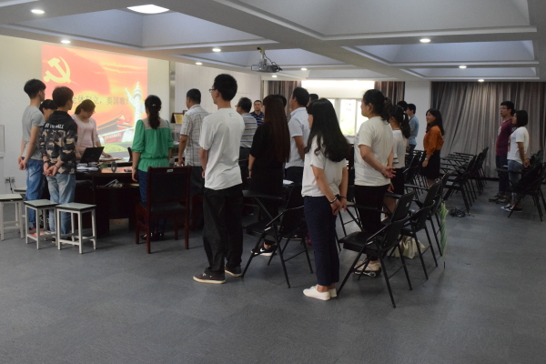 入党积极分子大会之后,党支部召开了预备党员转正大会。会上预备党员郑策、潘芮、刘双全同志总结了自己一年来的学习生活和对党员、党支部、党的政策的理解和感悟,通过他们的汇报,党支部其他同志感受到了他们一年来思想觉悟的提升、学习成绩的进步和工作能力的增强。支部正式党25人,实到20人,经投票表决,20人赞成,0人反对,0人弃权,赞成人数超过到会有投票权的党员人数半数,经党支部决定,同意两名同学的转正申请。会议最后,团委书记陈宇老师带领各位同志宣读入党誓词。