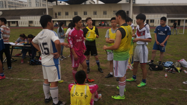 2015年6月4日,下午四时许,于校内足球场,我院与建工学院的足球半决赛在此展开。本次足球赛虽然是我院对建工学院这支强队,但是作为海天学子,爱闯敢拼的性格依旧塑造出了一群不服输的海天足球队队员。