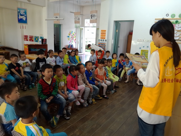 转眼间,所有小朋友已经起床准备就绪,此次带队的志愿者伍平为所有人分配好工作,各个志愿者按照所分配到的工作到不同的班级。此次讲故事的同学根据小朋友们的喜好,为他们讲述自己精心准备的故事,小朋友们不仅认真聆听,有的还提出问题,志愿者们耐心讲解,并与小朋友们很好地互动,在讲故事结束时,小朋友们在老师的带领下为志愿者唱起了所学的儿歌,这让志愿者们感到莫大的欣慰。