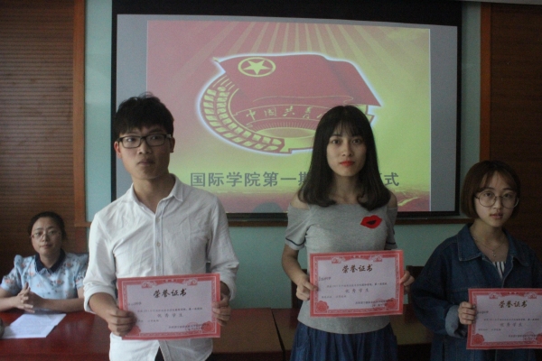 首先,闭幕式的第一阶段宣布了本期团校学习优秀团员名单,获此殊荣的有三位同学:张日盼、裴楚娇、夏晓岚。吴艳艳老师为这三位同学颁发了优秀团员奖状,同时在座各位团员都向这三位同学报以热烈的掌声。