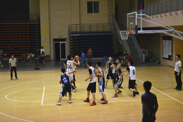 为增强我校球类运动竞技水平,丰富大学生日常生活,2015年6月10日晚上20点,宁波职业技术学院“BVF联赛”男子篮球赛在顾国华体育馆准时开赛。本次比赛是争夺季军之战,参赛队伍分别是工商学院和艺术学院。