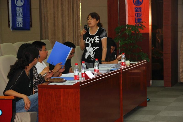 图为:新亚建设有限公司办公室主任桑鸿敏女士为本次大赛做点评