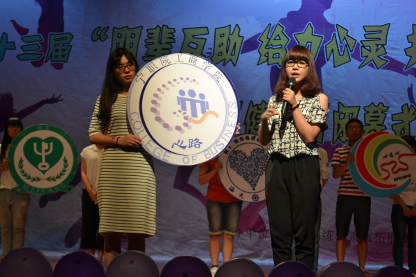 图为:工商学院心理Logo展示 在本次比赛中,工商学院的《归途》获得了文科场一等奖,《再回首》获得文科场优胜奖,并且工商学院心理团队获得了优秀心理团队的称号。心理情景剧是心理健康教育的一种独特而有效的方式,它以类似话剧的形式向学生介绍心理健康知识,传播心理健康理念,已成为我校开展大学生心理健康教育的优良载体。心理剧的内容取自大学生生活,形式生动活泼,学生的参与性、互动性强,能够激发同学们对身边生活的感悟,从而对自己的生活进行反思,更深刻地认识自我,领悟并找到解决困惑的方向。 工商学院 韩欣纯/文 陈奕旭/摄