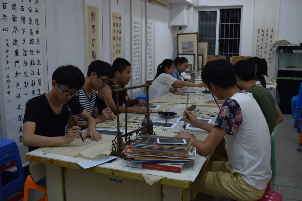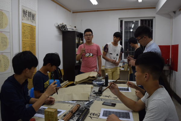 为了推进校园文化艺术活动,进一步提高团学助理的综合素质和能力。2015年6月14日晚6点,电信学院团学助理在文化街书法协会进行了书法练习活动。团委副书记兼书法协会会长罗维国作为本次指导老师,由于场地有限,团学助理分成两批练习。