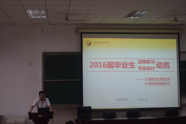 为进一步完善毕业生顶岗实习和就业工作,引导学生做好顶岗实习的心理准备,2015623日下午4点,电信学院在精技楼503召开2016届毕业生顶岗实习动员大会。电信学院副院长汪志达、网络技术教研室主任李如桃、计算机教研室主任李超燕、辅导员刘利峰和2013级计算机大类专业同学参加了此次大会。大会由李超燕老师主持。