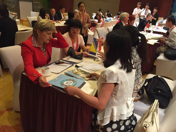 我校志愿者穿着印有“海娃”和“驼娃”图案的衣服,每天早上7:30从学校前往投资洽谈会会务组,上午9:00准时和中东欧国家的外宾进行行程对接工作。在6月9日的投资贸易洽谈会的,我校的志愿者在中国—中东欧国家投资合作洽谈会活动现场承担翻译、引导、接待、后勤等会务服务。