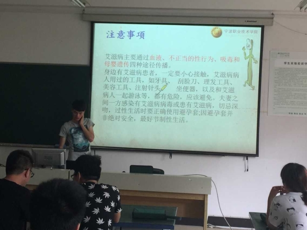 据我国现有的AIDS统计资料来看,感染者年龄也以2040岁所占的比例最大,而中国的艾滋病疫情呈现新特点之一是性传播持续成为主要传播途径。“青年学生正处于生理和心理发生巨大变化的时期,同时也处于学习知识、树立良好行为习惯的最好阶段,因此在大学校园内推行预防艾滋病工作显得非常重要,让当今大学生正确认识艾滋病,才能真正做到有效预防艾滋病,提高自我保护意识,才能真正消除对艾滋病患者的歧视。”电子3142班班长金赏恩说到。
