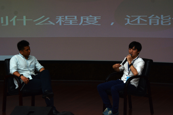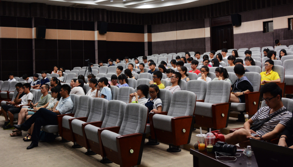 图为:活动现场 讲座的最后一环节是“头脑风暴”,即嘉宾之间的现场提问环节,让现场的学生们更加深入了解了两位嘉宾的创业以及坚持自己梦想的历程。至此,在一片热烈的掌声中,活动圆满结束。记者团 林雪云/文 翁佳俊/摄