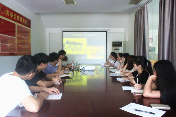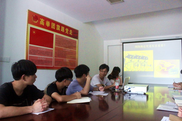 2015年6月25日下午两点半到四点,互联网信息办干部赵华奇学长在学生事务中心开展了“浅谈网络舆论引导能力培养”的讲座。为了更好地发展我院各个新型媒体平台,八大分院以及各个组织的微信负责人两点半准时到达学生事务中心参加讲座。