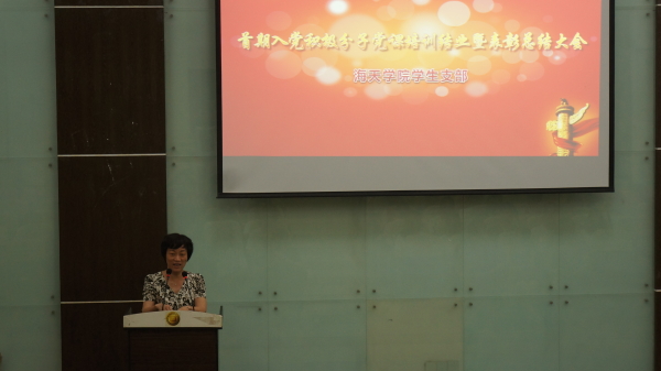 2015年6月26日星期五,下午3点在1105教室开展了入党积极分子党课结业暨表彰总结大会,出席此次会议的有学院党委委员周红老师,保卫处处长励宁老师,公共教学部马旭光老师,海天学院党总支书记裘广宇老师以及来自海天学院各支部书记、委员。
