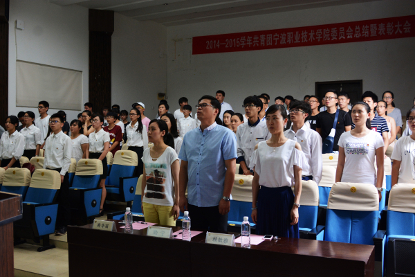 2015年6月30日12时,共青团宁波职业技术学院委员会2014—2015学年总结暨表彰大会在学院东1105教室举行。学院武装部部长、保卫处处长、院团委书记励宁老师,艺术学院直属党支部副书记、院团委副书记赖敏雅老师,院团委游华丽老师出席了此次大会。