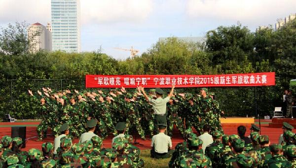 2015年9月24日下午3点,来自八个分院的16个代表连队2015级新生的在操场上集合,奏响了一曲又一曲嘹亮的军歌。