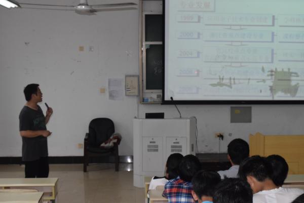 为使电信学院的学生更加了解所学的专业理论,2014年11月10日,电信学院在精技楼401开展了始业教育讲座,此次讲座特邀宁波港股份有限公司劳模胡耀华,由电信学院张友桥老师主持此次讲座,电信学院电子专业2015级全体新生参加了本次讲座。