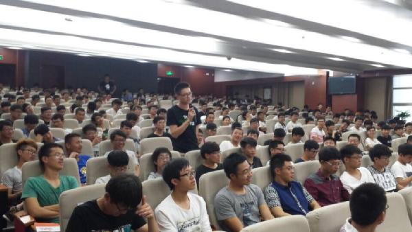 之后,学长向新生们介绍海天学院所获得的重大奖项,并表示作为海天学院的学子而感到骄傲。同学们被学长的演讲深深吸引,现场掌声久经不息。