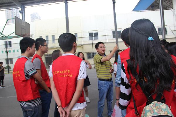 2015年9月19日上午7:00,在风雨篮球场的一角,建工学院的志愿者们集合于此。为方便今日新生报到,我院志愿者部征集七十多名志愿者,帮助我院新生完成报到事项。此次活动由志愿者部部长助理蔡瑶同学组织,由党总支书记丁立人老师和学工办主任吕勇老师监督进行。